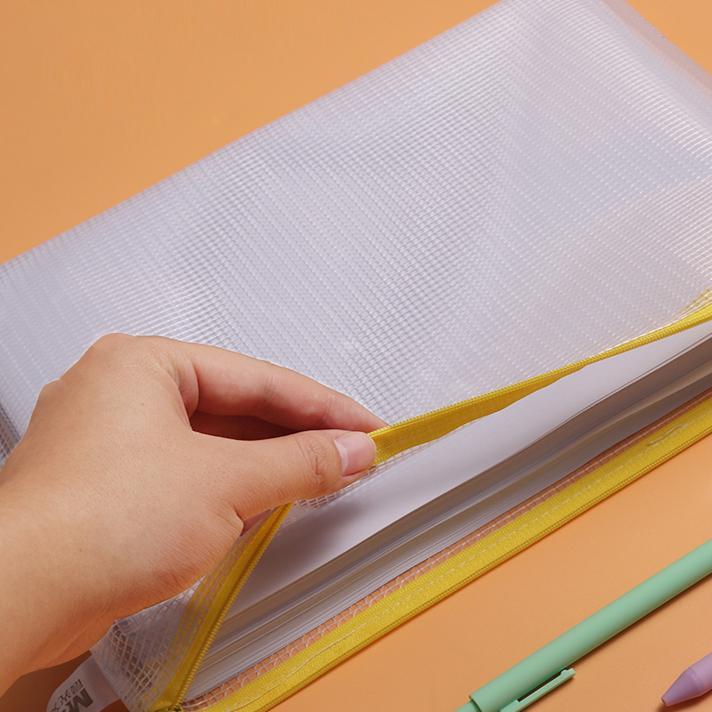 Wholesale Stationery Student A6/A5/A5.5/B5 Nylon Mesh Pen Change Small Items Storage Portable Ziplock Office School Document File Bag